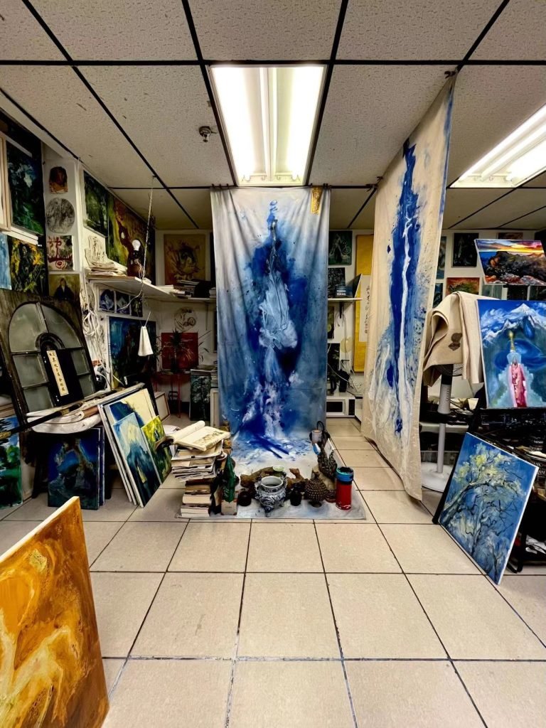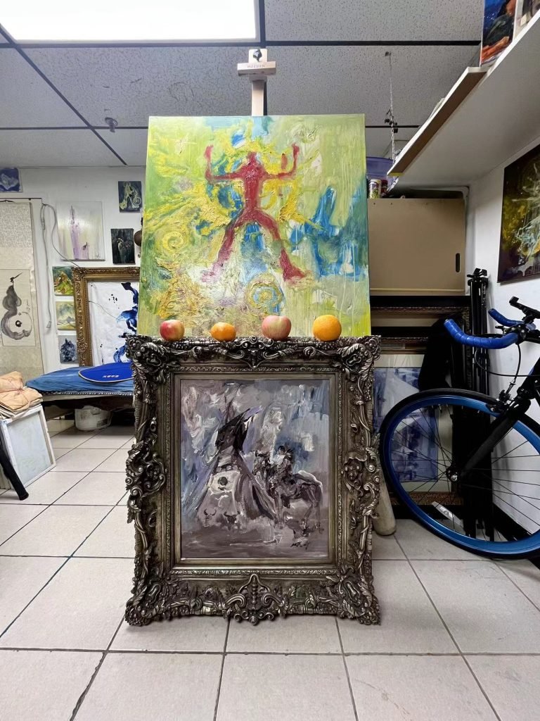 Mr. Liao Da Yuan (the big wish) is an exceptional artist from China, where he gained an artistic reputation and reached a broad audience of collectors. He spoke out against Communism and religious suppression and was consequently persecuted and imprisoned for four years in his home country of China. While in prison, he was ruthlessly tortured, but he and his spirit remained unbroken. He devotes his life to these three tenants: truth, compassion and forbearance. His pivotal, triumphant and most important work is a metaphysical self-portrait depicting his ability to rise above such profound adversity.